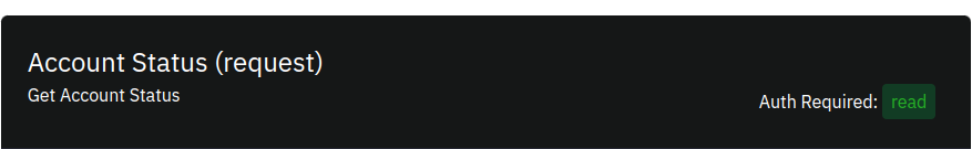 For example, on the screenshot below, you can see that to be able to use the Account Status, a token with read access level must be used.